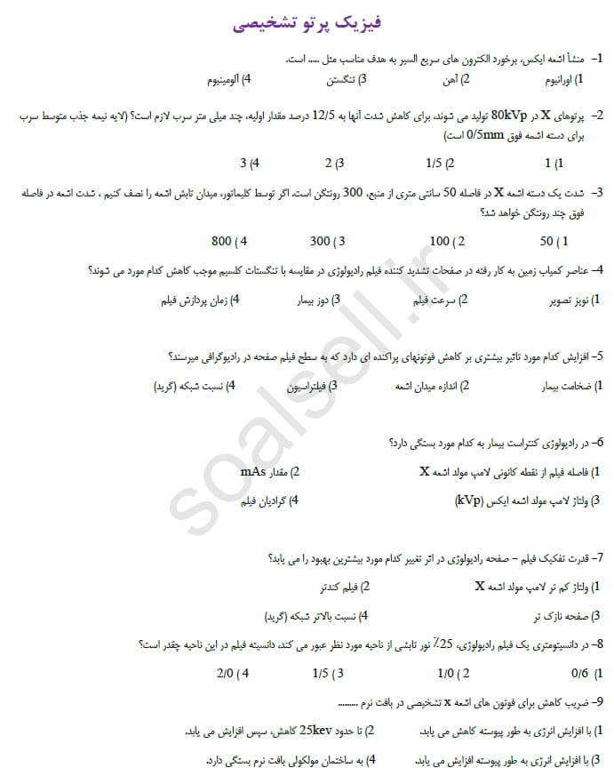 💡 پکیج کامل سوالات استخدامی رادیولوژی